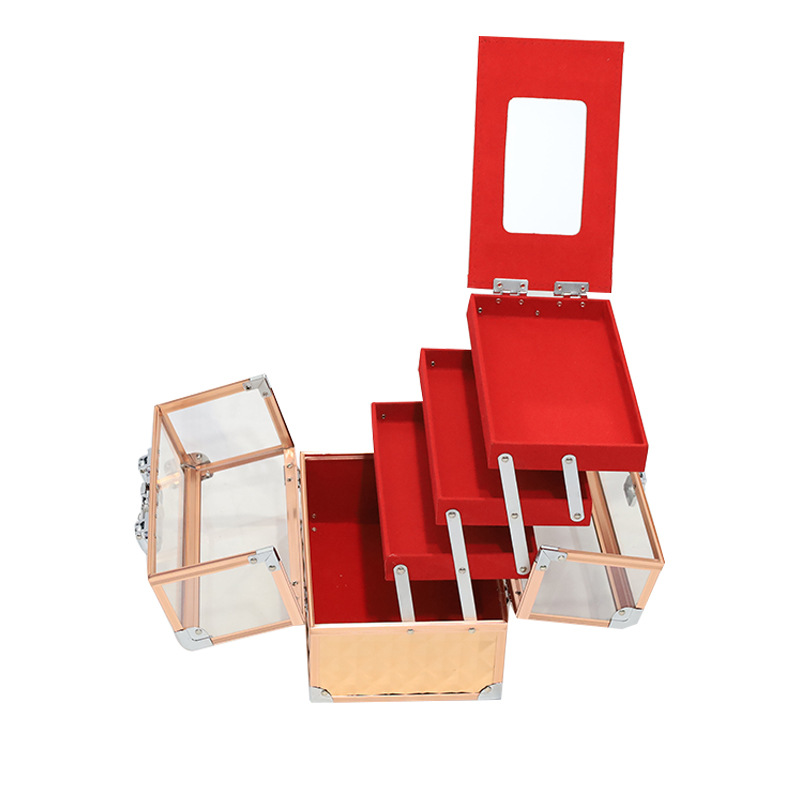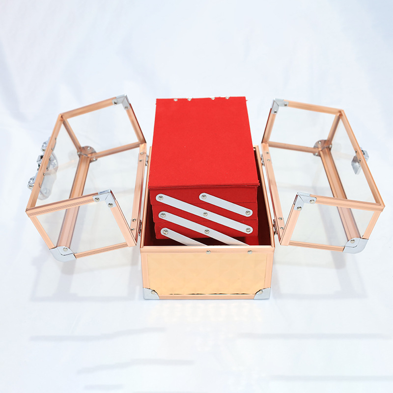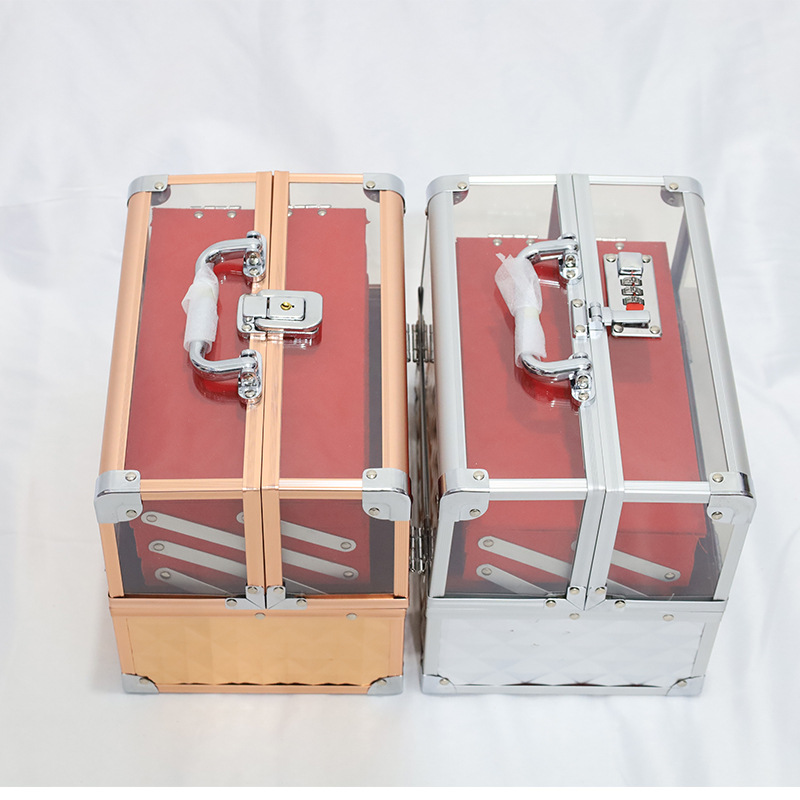 批发铝合金透明亚克力化妆箱 手提彩妆收纳箱 纹绣美甲美睫工具箱