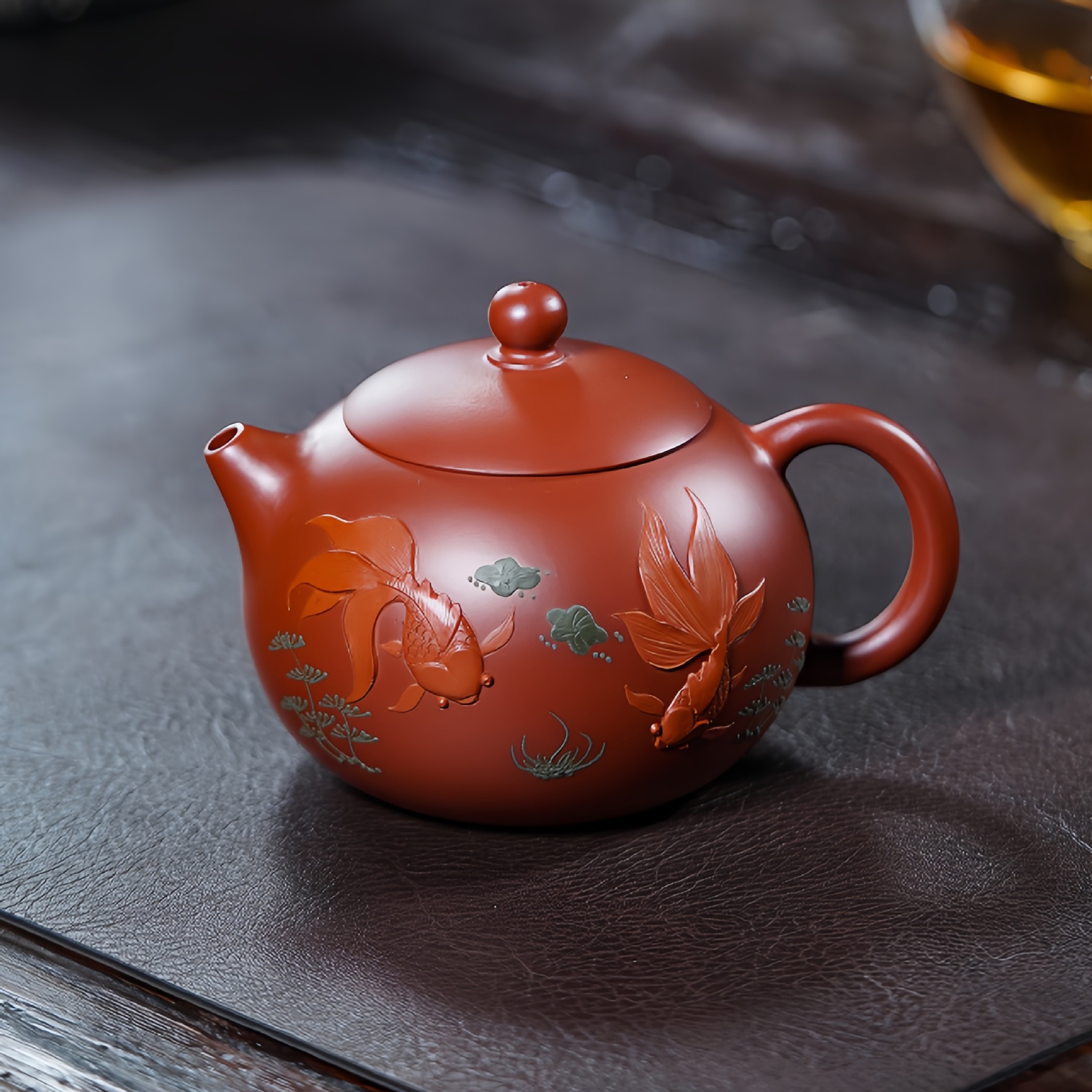 宜兴紫砂壶原矿大红袍双鱼西施名家手制茶壶茶具礼品批发代发