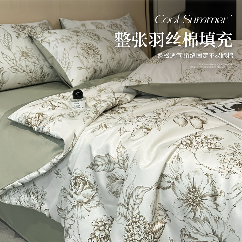 尺寸规格 | 200*230cm夏被床单四件套【2.0m夏被+240*245cm床单+枕套*2】 | 填充物 | 普通纤维 |