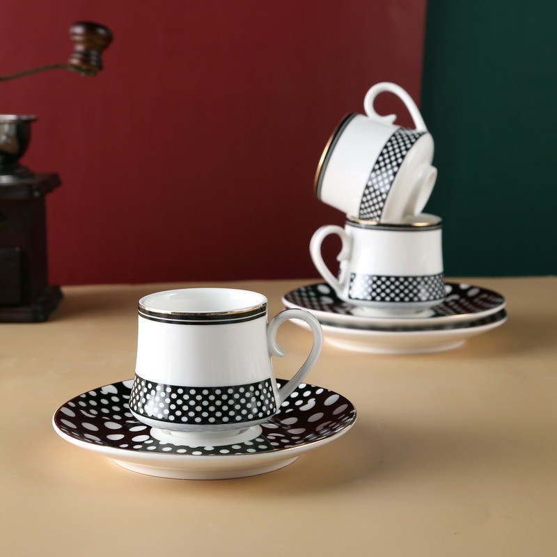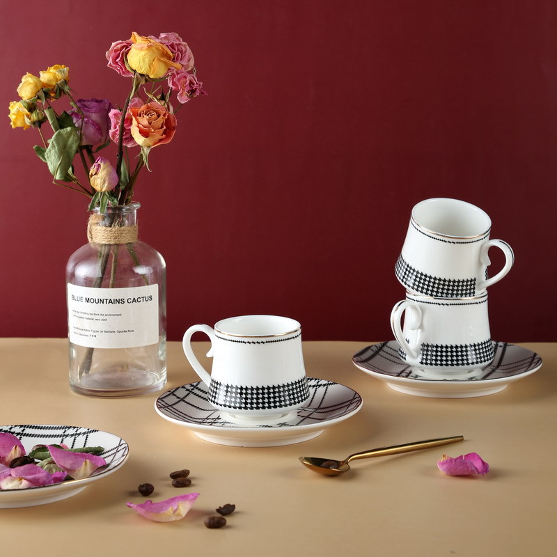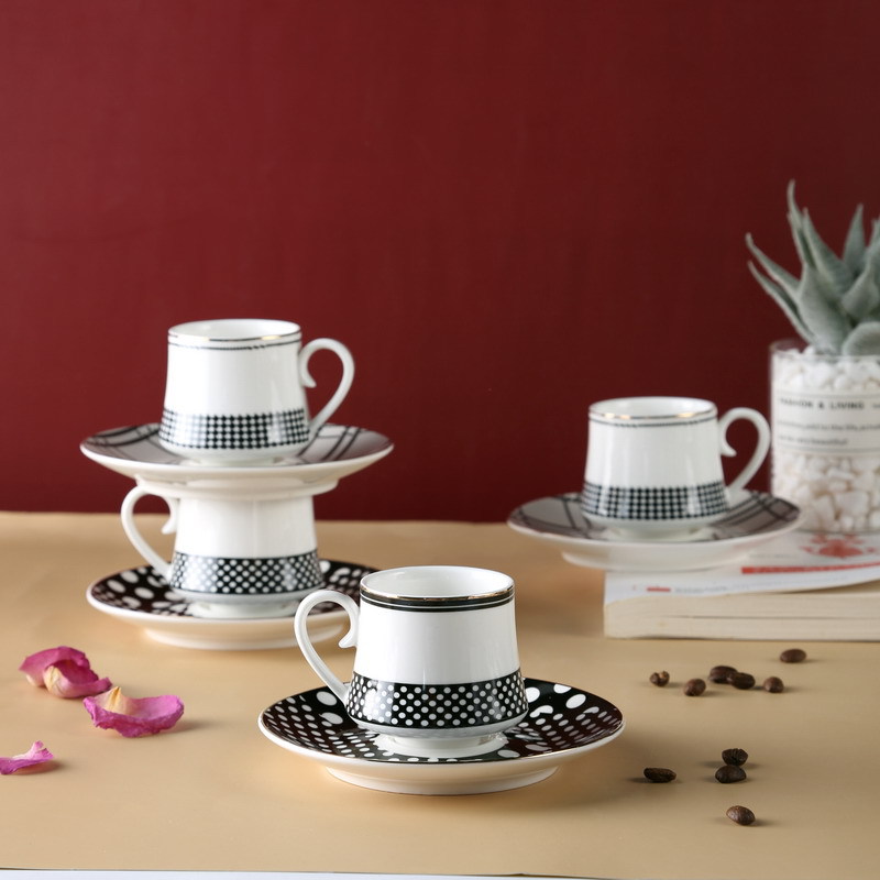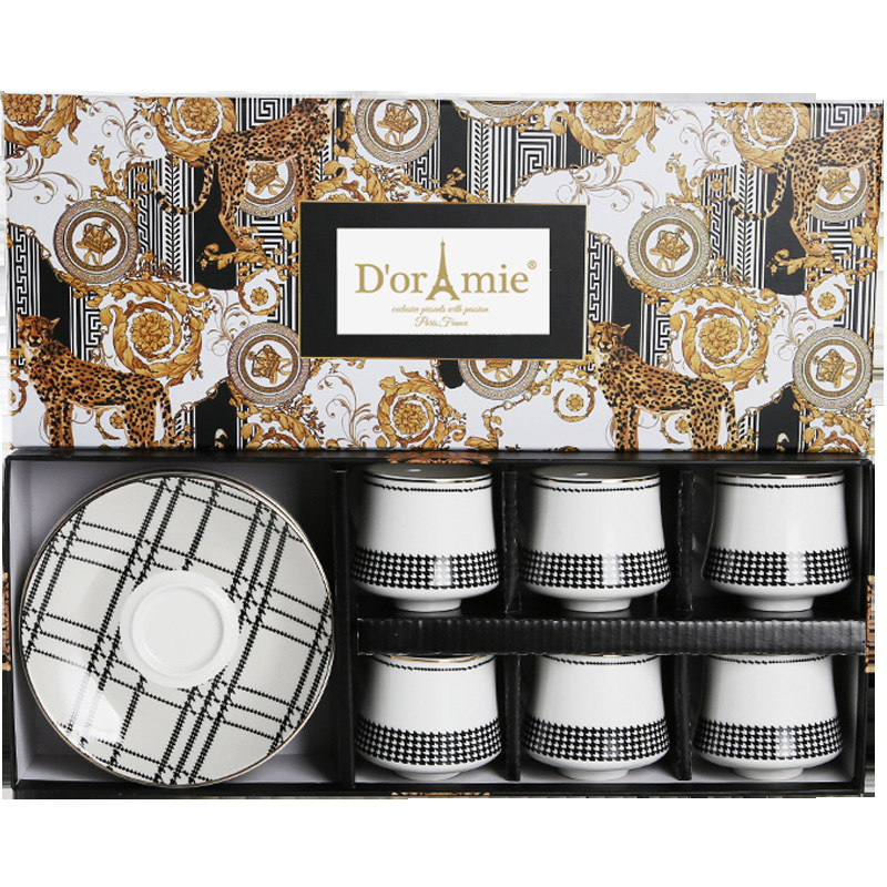 | 颜色 | 千鸟格纹六杯碟礼盒装 | 颜色 | 黑白波点+千鸟格纹混搭六杯碟礼盒装 |