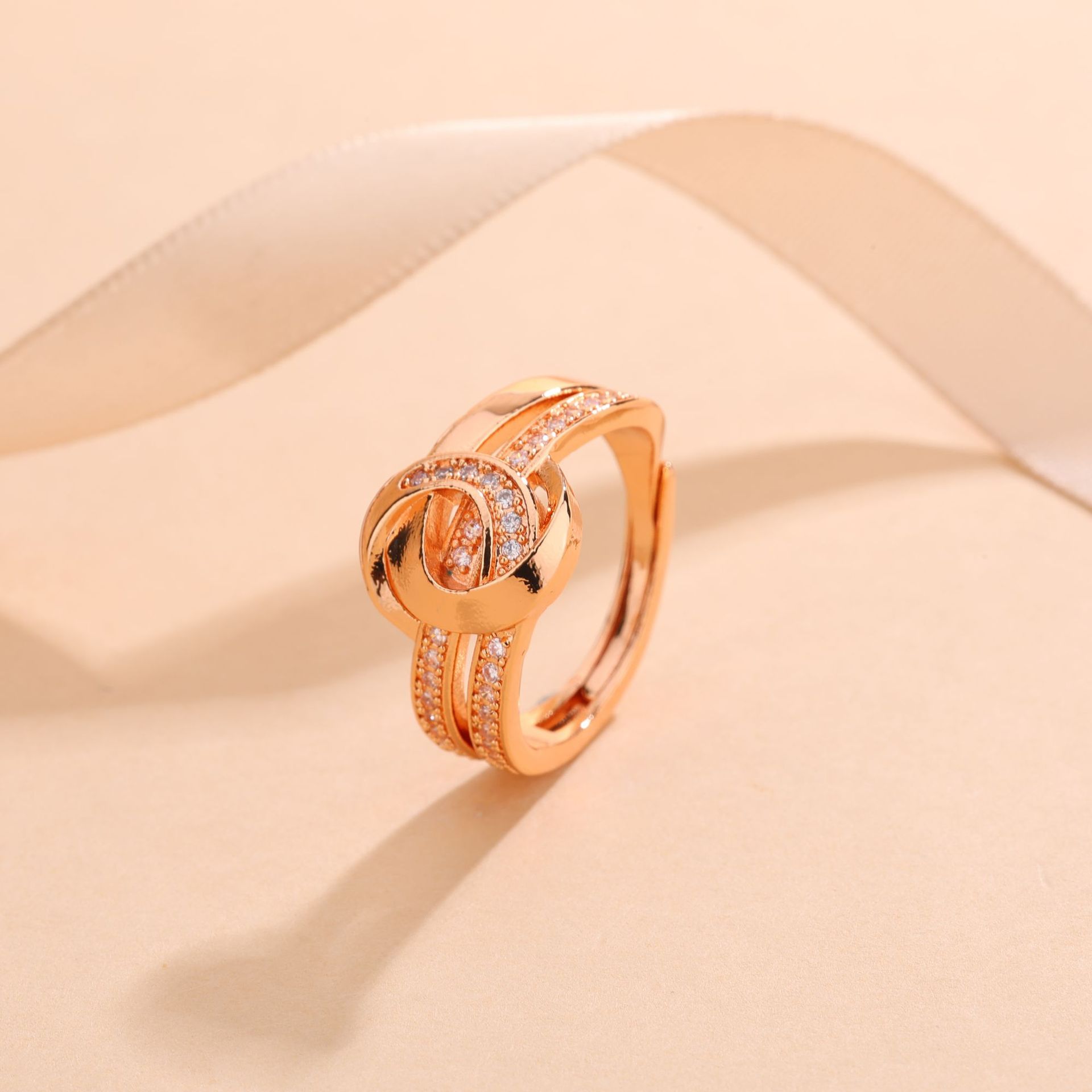 施家世奇高版本V金璀璨环扣金镶钻戒 锆石开口戒指环女轻奢饰品