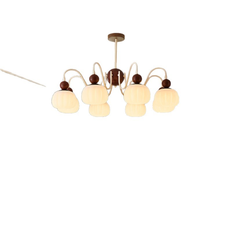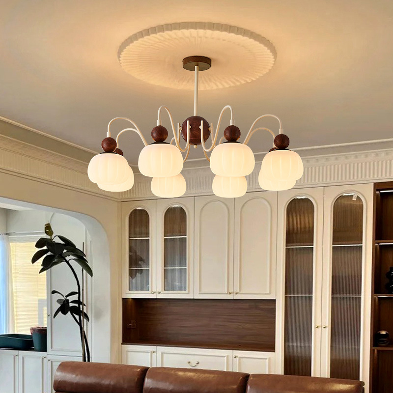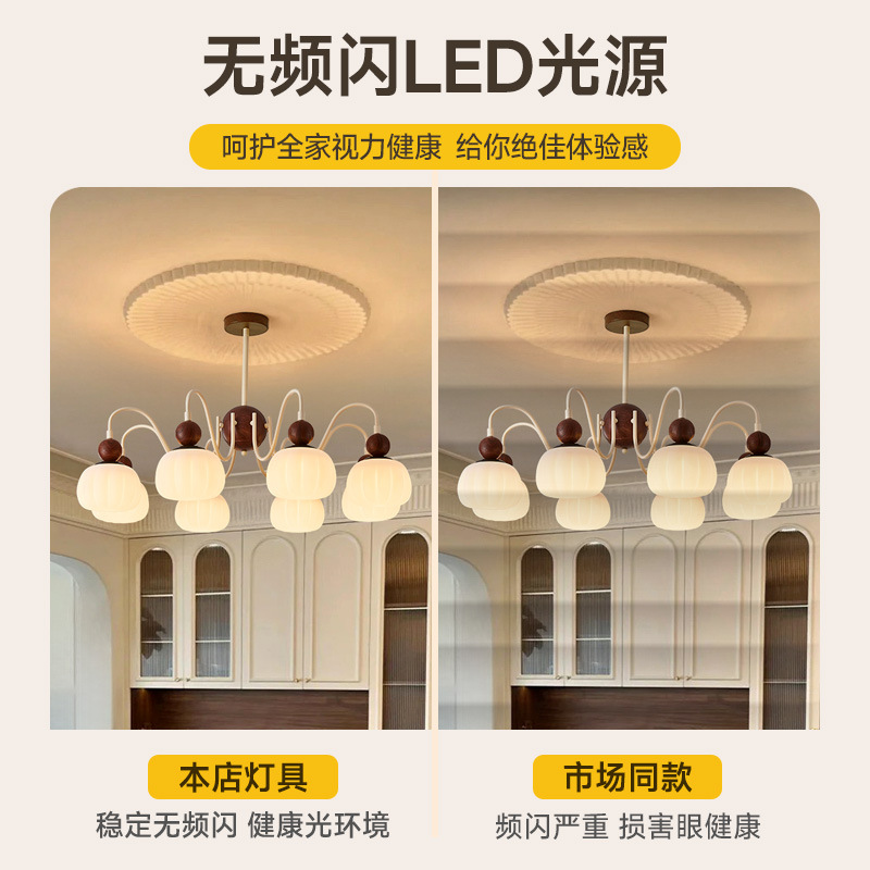 法式中古风客厅吊灯复古胡桃木色南瓜吊灯美式创意餐厅主卧室灯具