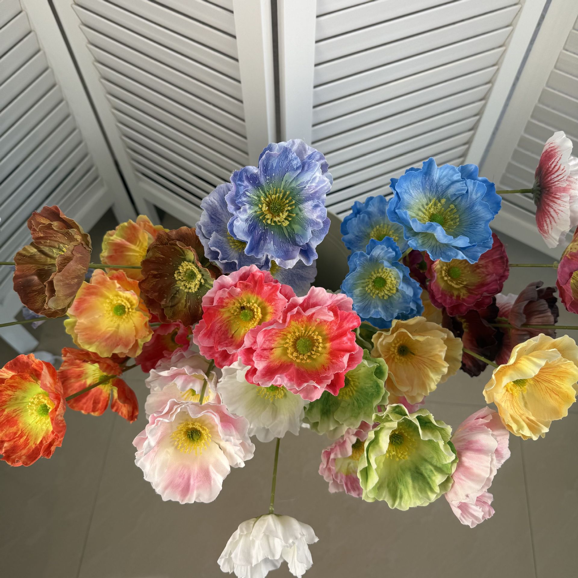 高枝莫奈罂粟花梦幻紫色婚庆装饰仿真花摄影造景道具花虞美人家居