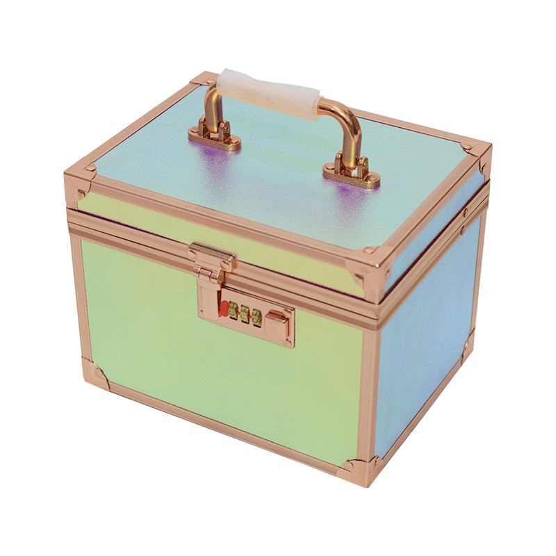 玫瑰金铝合金化妆箱子手提采耳沐足纹绣大容量多功能化妆品收纳盒
