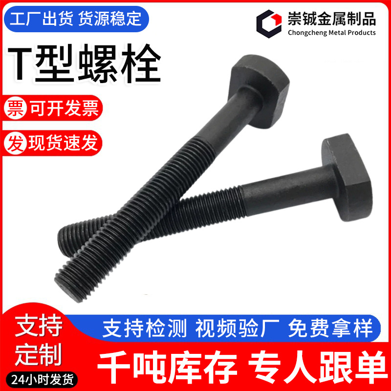 T型螺栓高强度金属发黑螺栓压板螺丝T型槽全螺纹螺杆固定工具配件