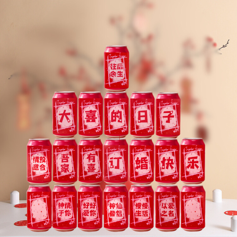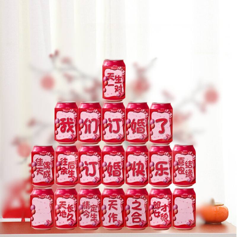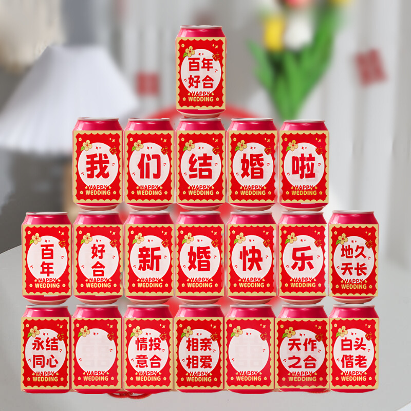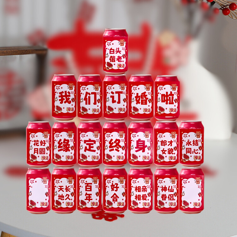 婚礼订婚可乐易拉罐diy不干胶贴乔迁年会订婚宴个性设计批发贴纸
