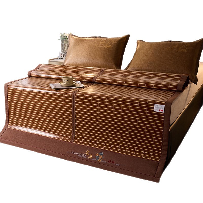 高档夏季艾草竹席草席冰丝席双面可折叠单人学生宿舍凉席空调席子