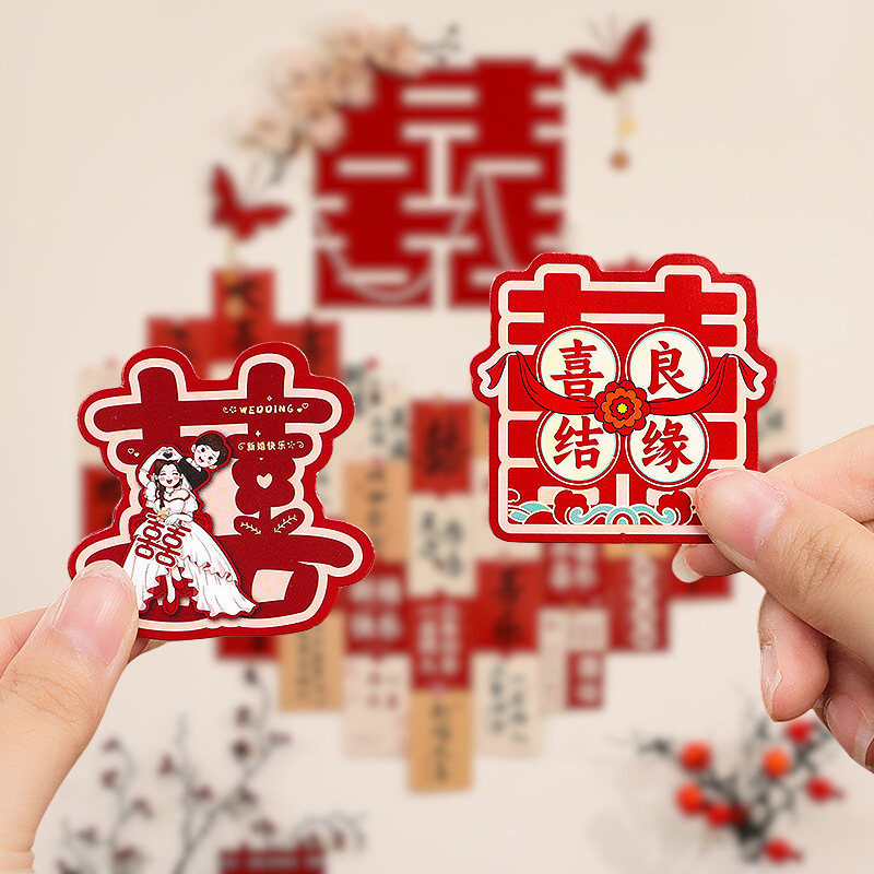 手抛喜迷你小喜字婚房装饰新礼布置楼梯窗帘果盘囍字贴结婚用品
