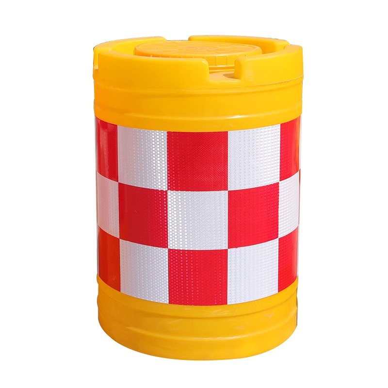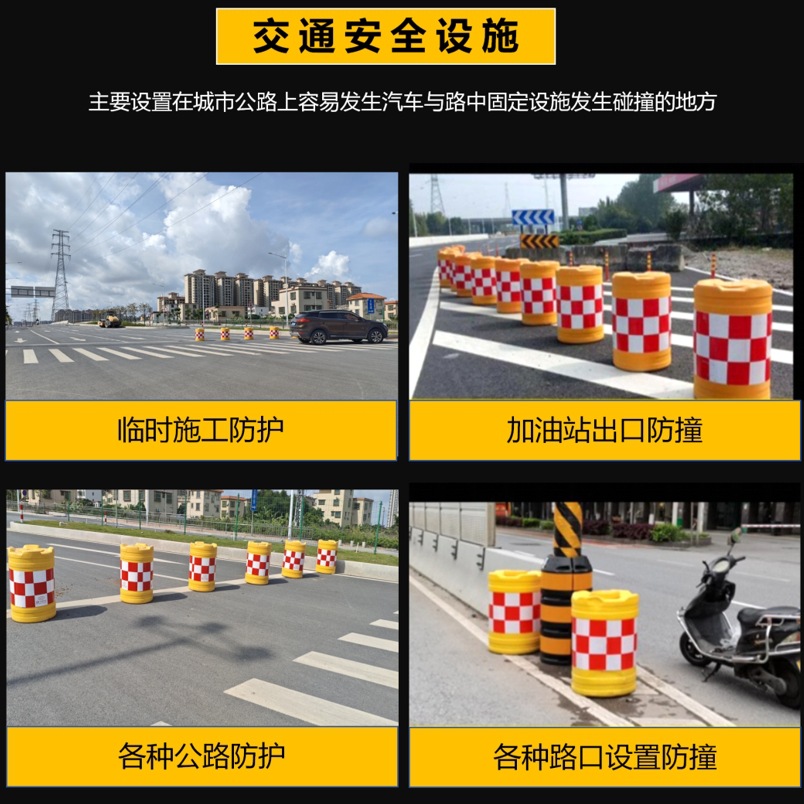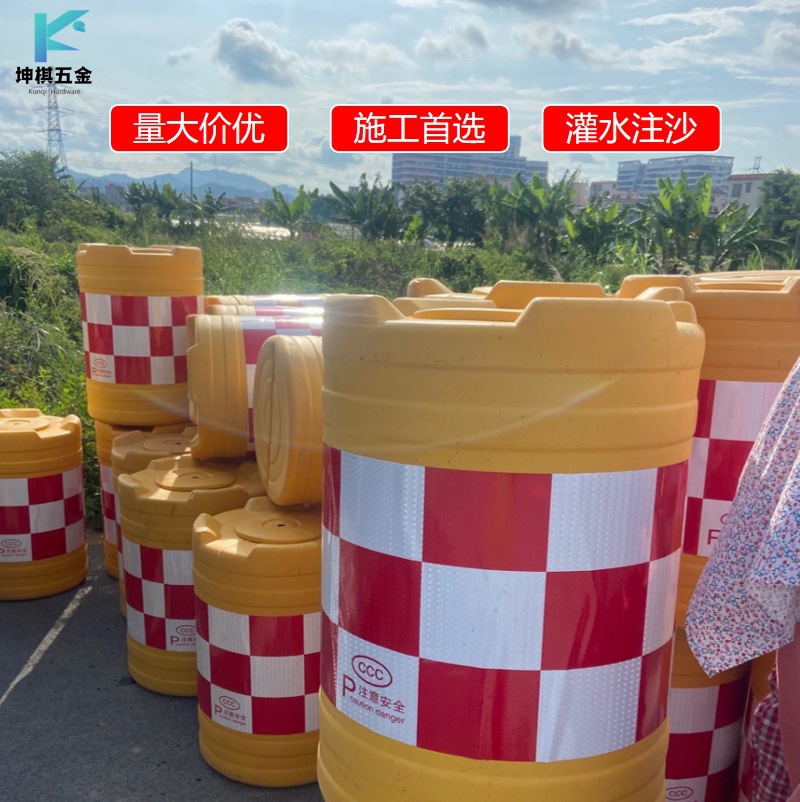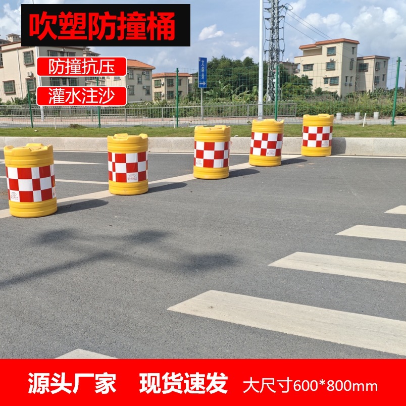 800*600吹塑防撞防护桶现货红白格子注水灌沙圆桶移动水马安全
