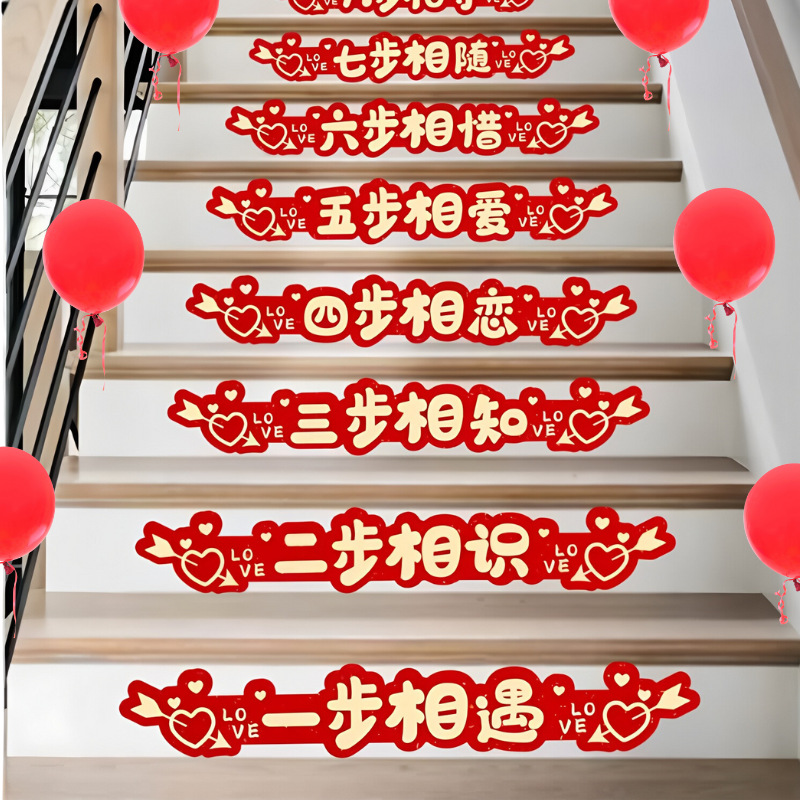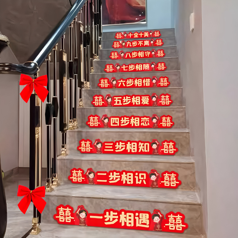 楼梯装饰结婚步梯楼梯喜贴婚庆房间扶手台阶贴纸套装婚房布置用品