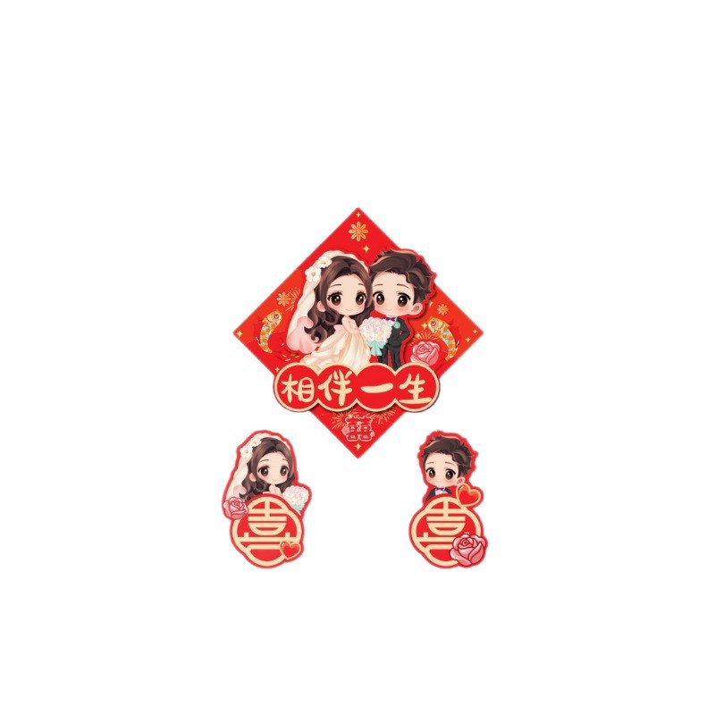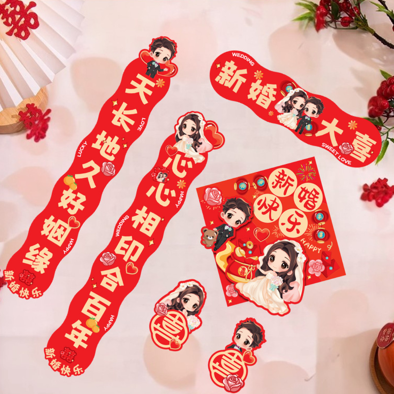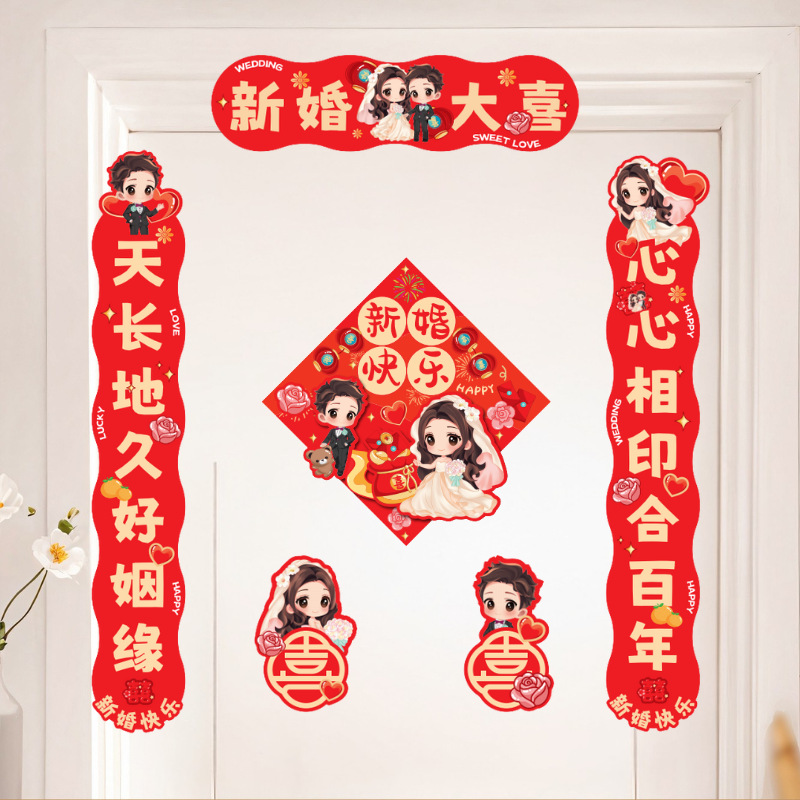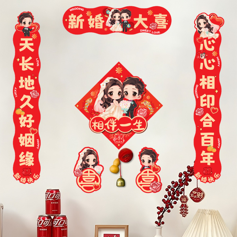 结婚专用新房卧室喜字对联女方婚房布置套装婚礼喜联房门装饰喜联
