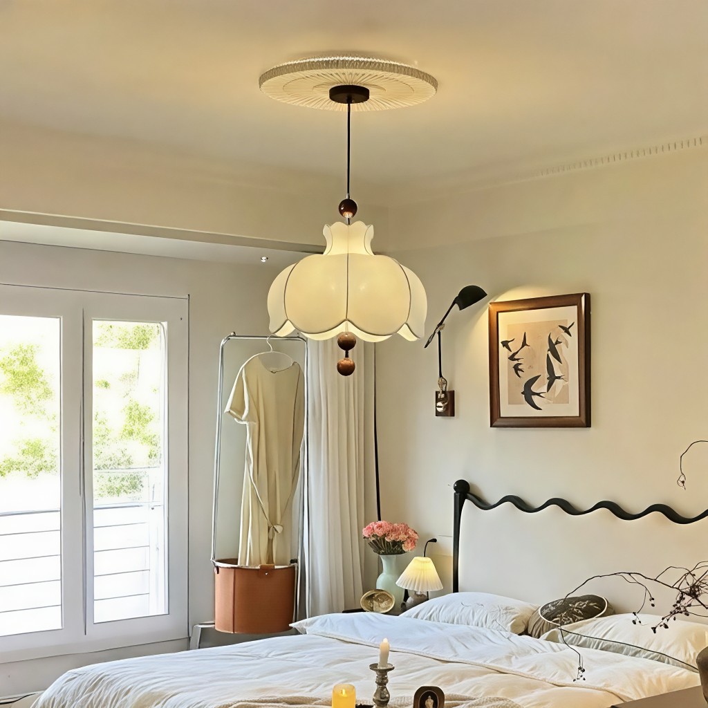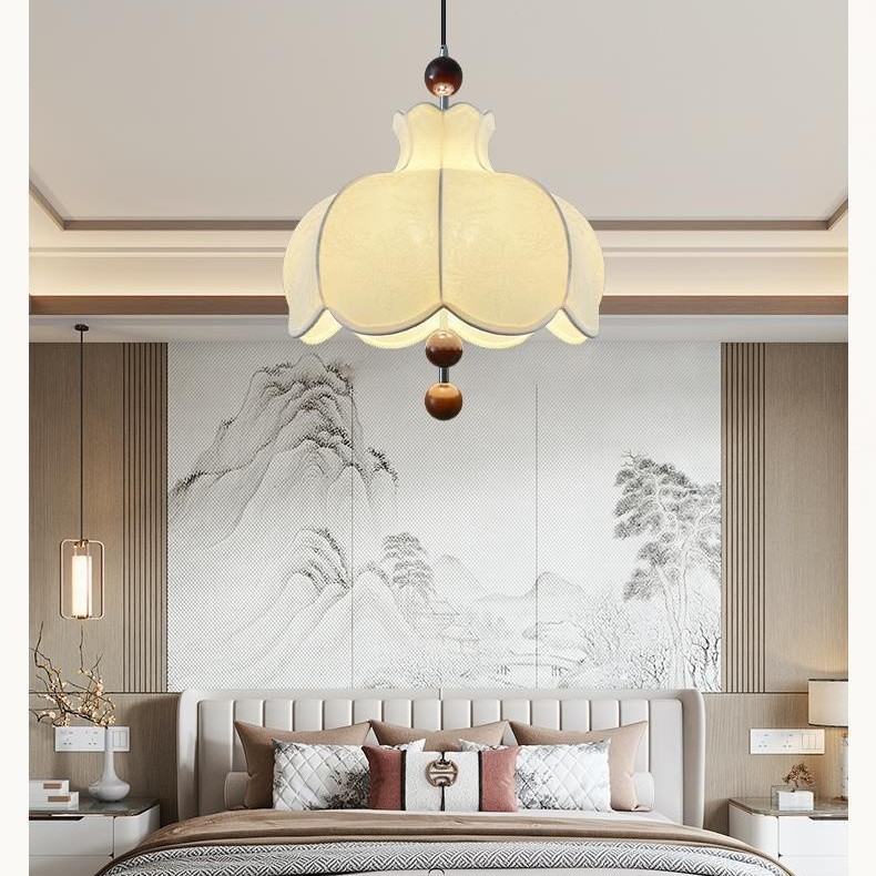 卧室灯法式中古风布艺餐厅吊灯复古实木南洋日式诧寂风卧室房间灯