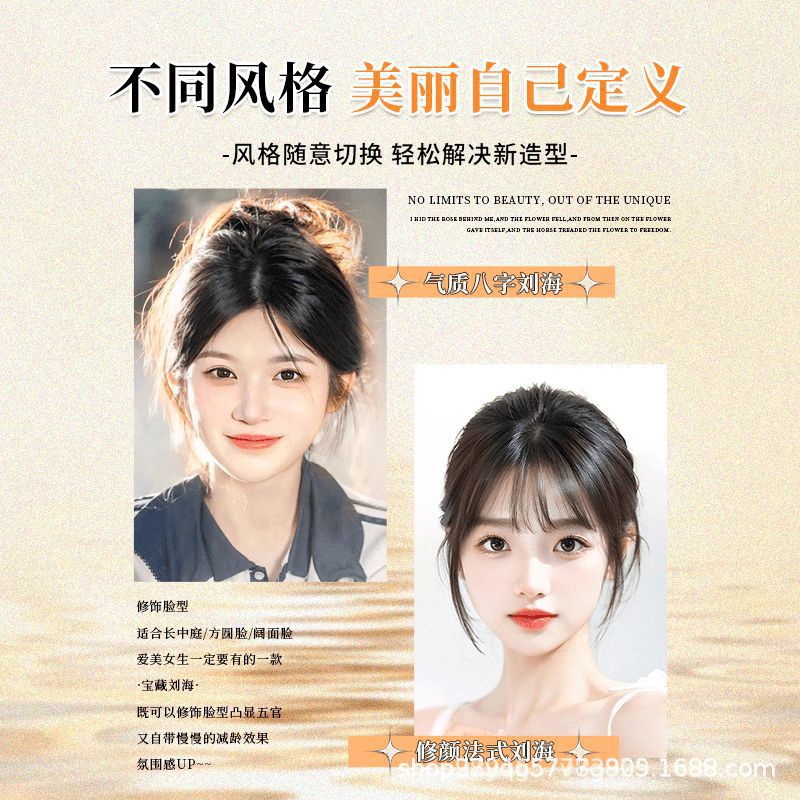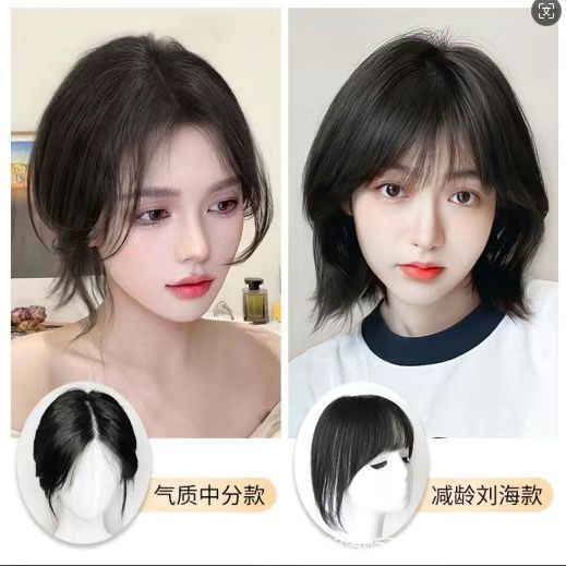 8*11cm全手织真人发丝增发量蓬松高颅顶无痕隐形八字刘海补发片