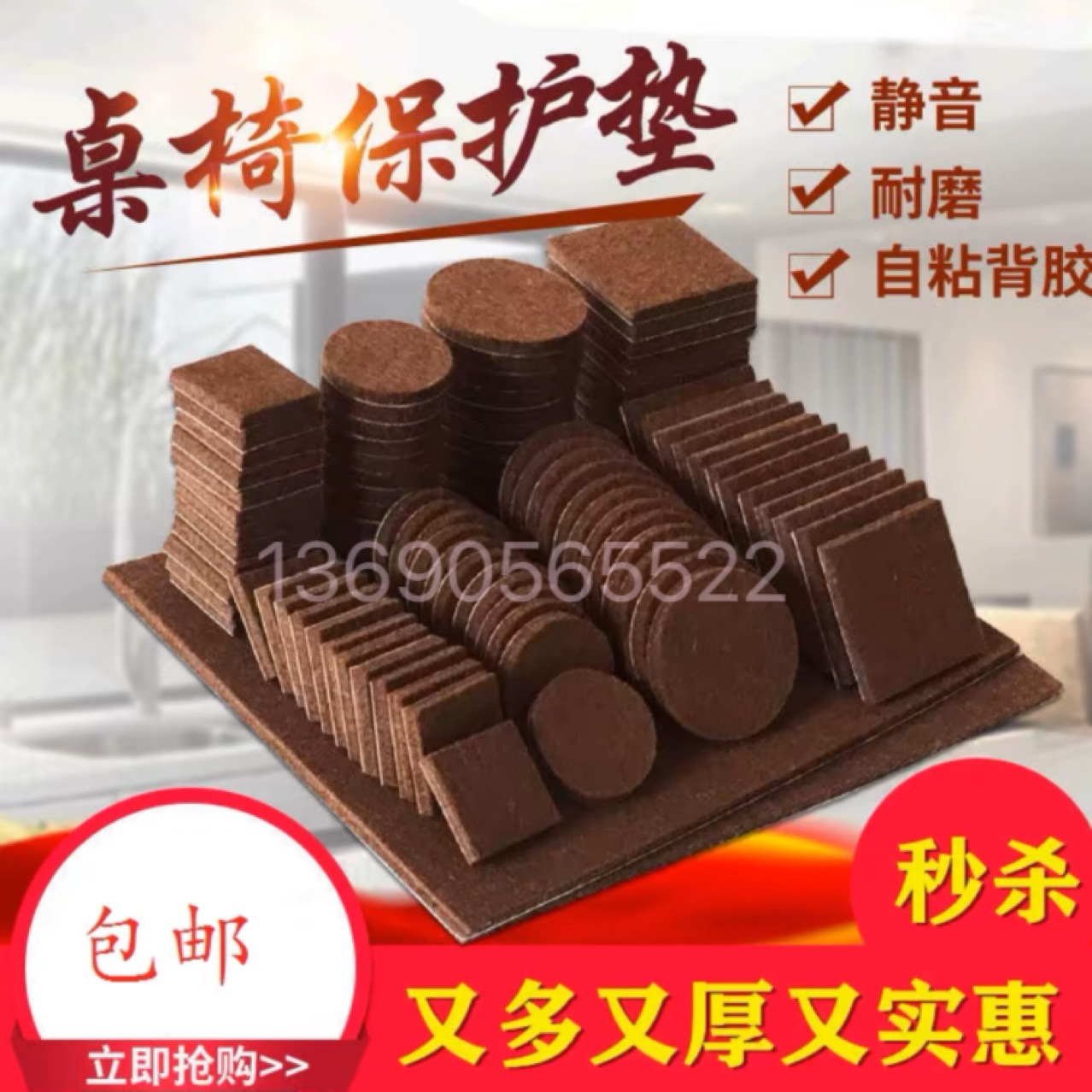 现货家具桌椅防滑毛毡脚垫静音圆形加厚绒布背胶自粘贴毛毡垫片