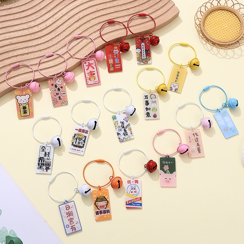 亚克力钥匙扣diy挂件双面文字牌暴富祝福牌书包车钥匙钢丝圈挂饰