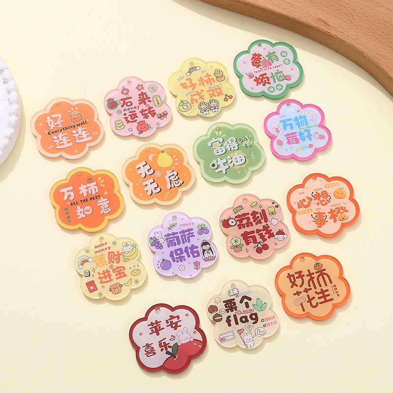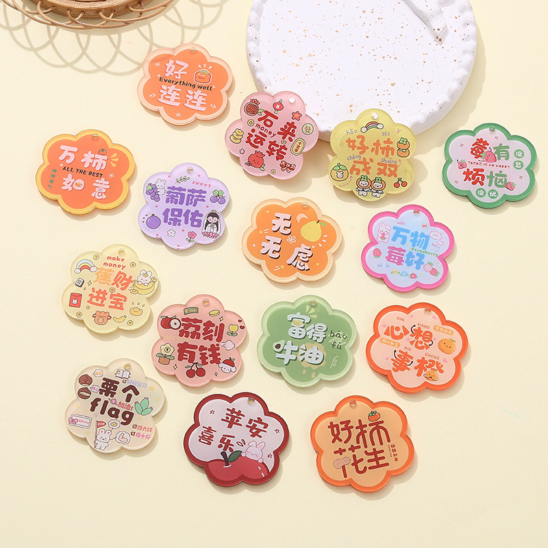 花型亚克力钥匙扣文字祝福钥匙圈可爱创意小礼品钥匙扣挂饰批发