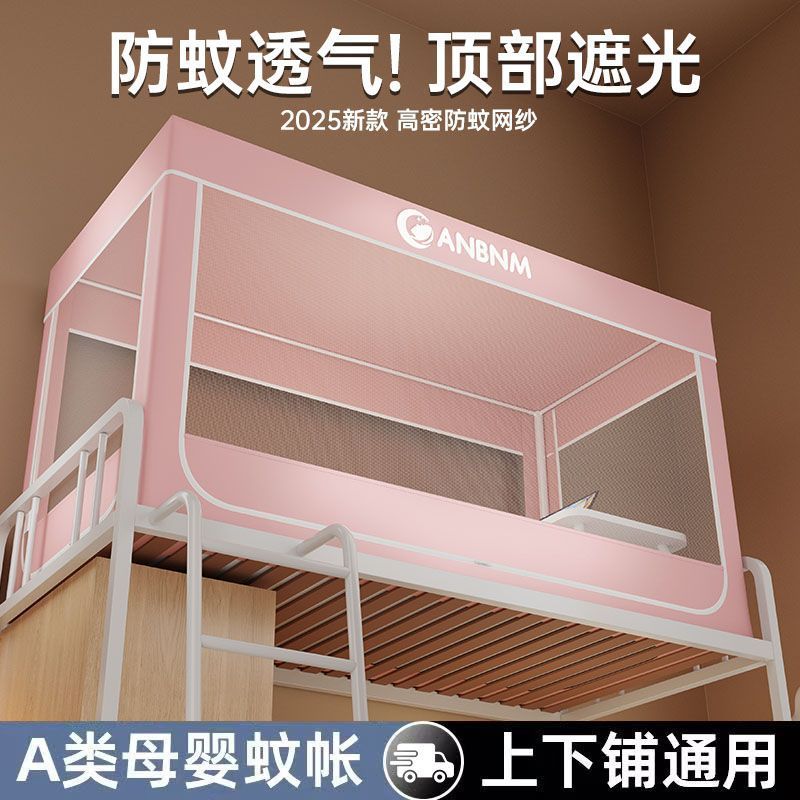 南极人2025新款夏季防尘蚊帐学生寝室防摔拉链式方帐上铺下铺纹帐