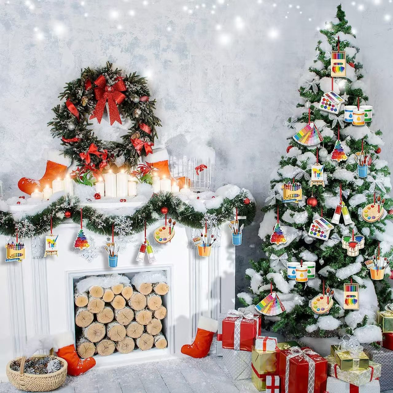 跨境热销返校季木质悬挂装饰品创意画笔颜料教室装饰挂件