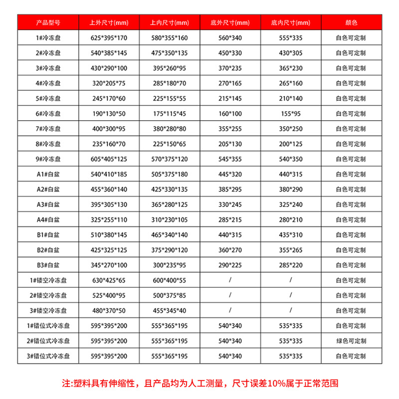 规格型号 | 9# 白色 605*405*125 | | 规格型号 | A1# 白色 540*410*185mm |