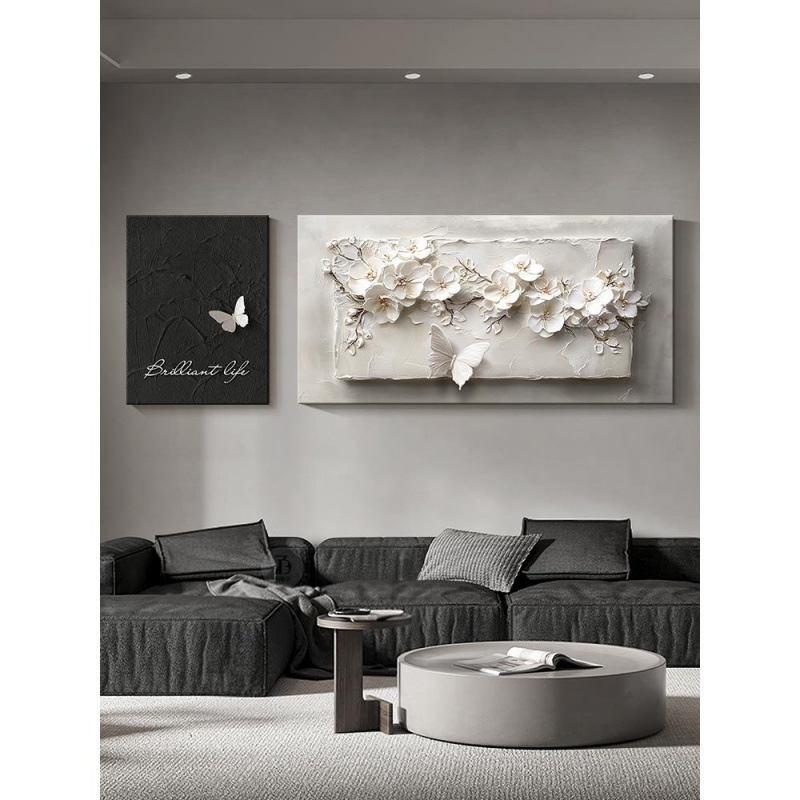 规格 | C款-花蝶翩翩 | 尺寸 | 艺术肌理砂岩画【磨砂颗粒感】;35*50/100*50cm-无框画(松木内框) |