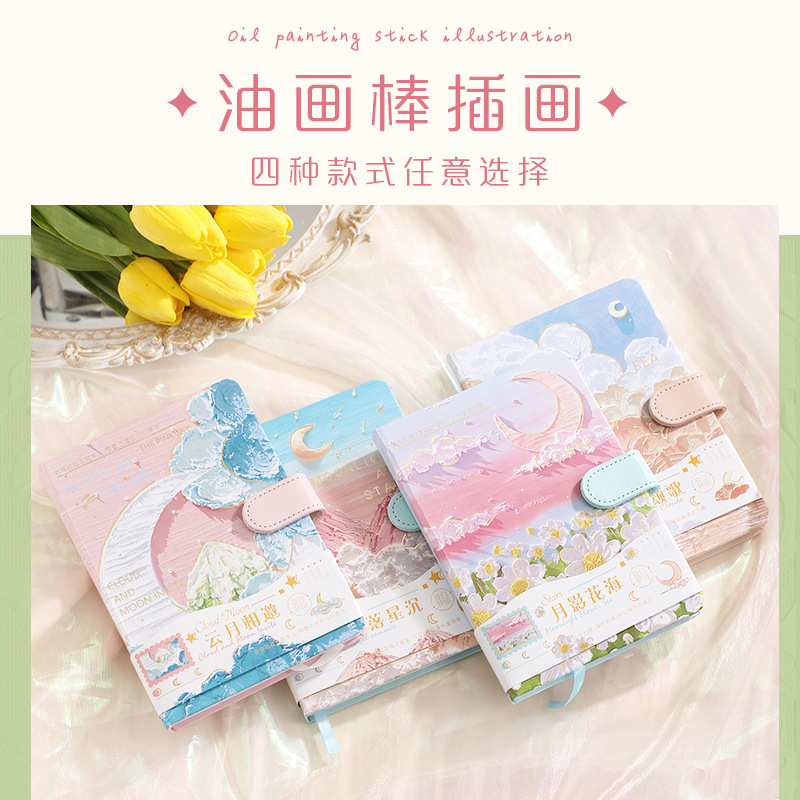 文艺手绘油画插画手账本PU磁扣本多功能彩页笔记本子学生文具批发