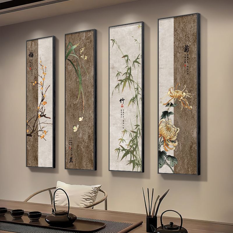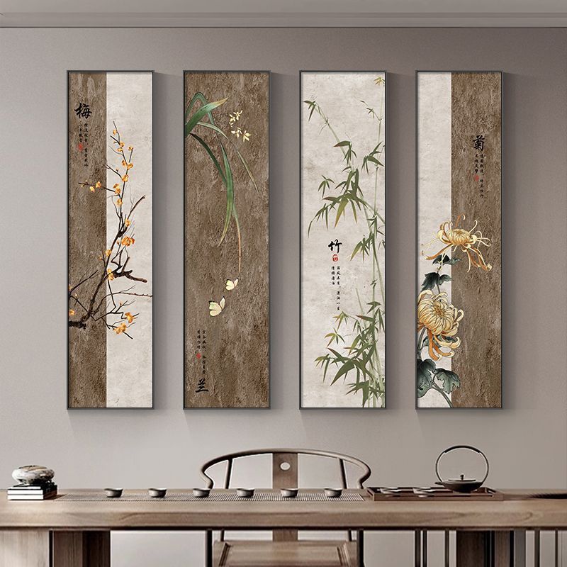 梅兰竹菊客厅沙发背景墙挂画新中式书房茶室墙面装饰画中堂四联画