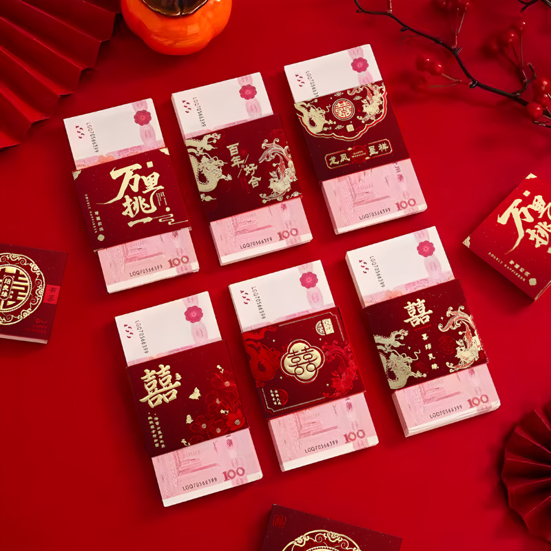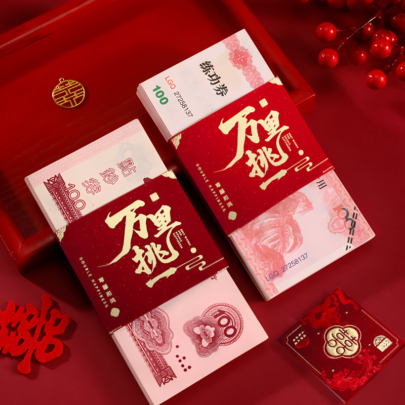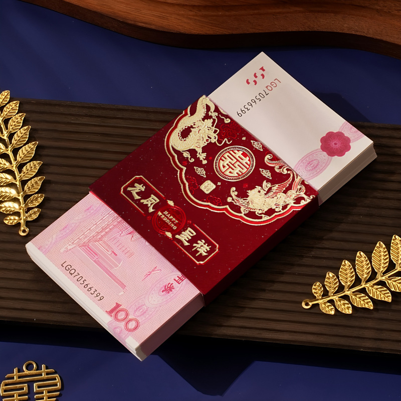 彩礼现金封条万元捆钱结婚钱套喜字红包订婚聘礼礼金绑钱喜钱扎带