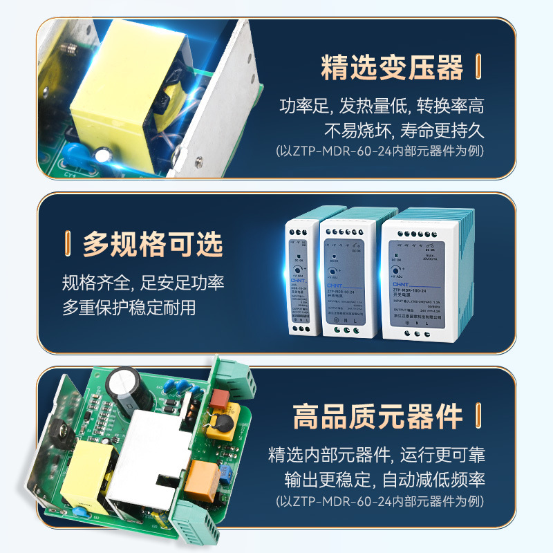 正泰ZTP开关电源MDR导轨式开关电源220转直流5V12V24V HDR变压器