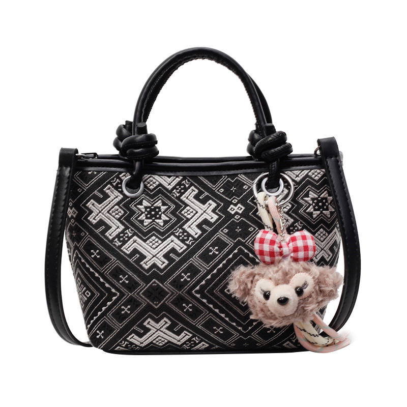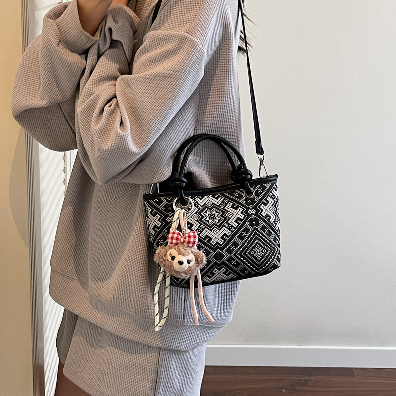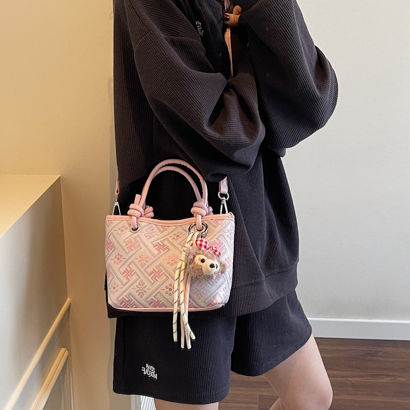 小众设计感手提水桶包中国风万吉纹单肩斜挎包大容量通勤包带挂件