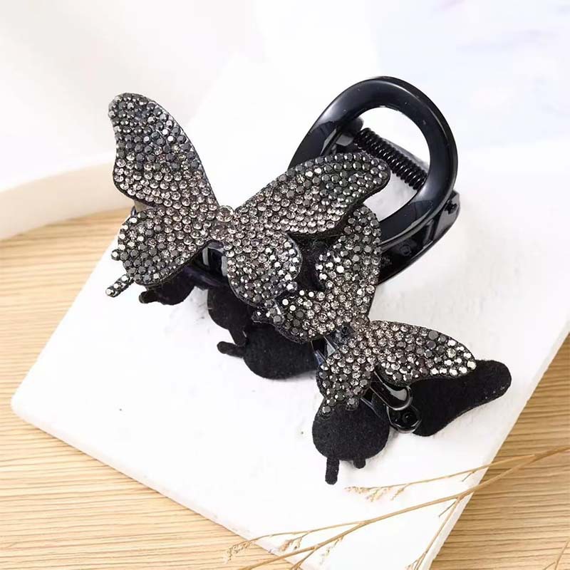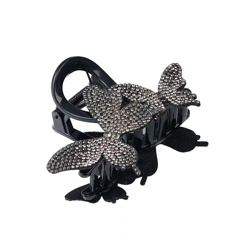 双蝴蝶发卡小香风水钻抓夹优雅气质发夹后脑勺盘发夹鲨鱼夹发饰