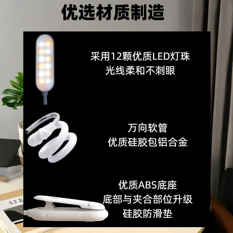 LED书夹灯阅读灯USB充电看书灯学生宿舍护眼防蓝光小台灯可调光