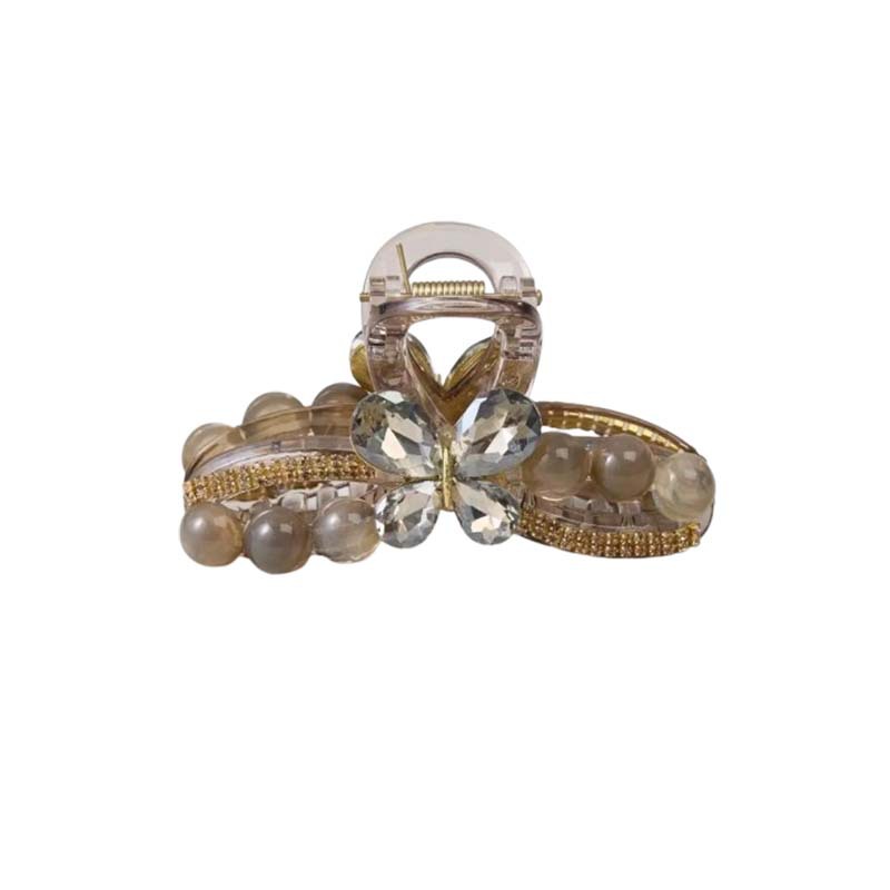 轻奢时尚香槟色重工蝴蝶水钻抓夹高颜值气质后脑勺发夹鲨鱼夹发饰