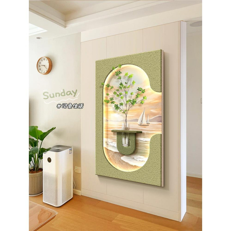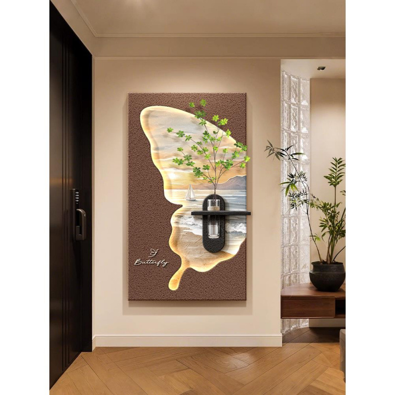 奶油风蝴蝶入户玄关装饰画海景走廊立体砂岩肌理画客厅高级感挂画