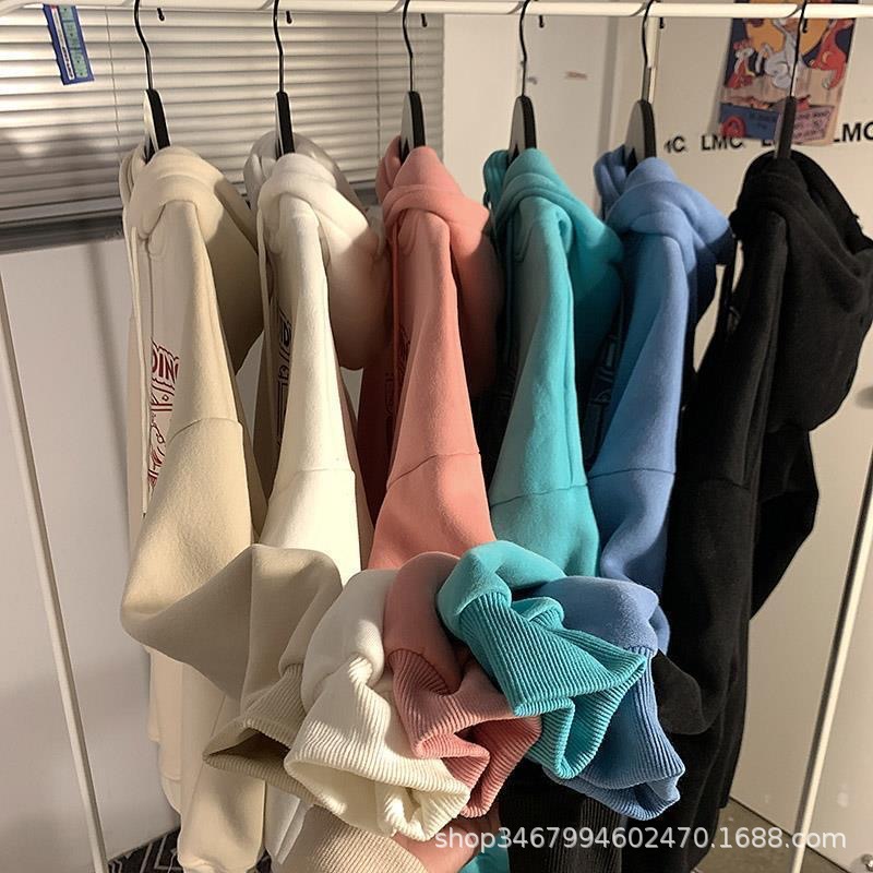 新款韩版卫衣女绒衫 秋冬宽松大版女装加绒连帽卫衣休闲外套批发