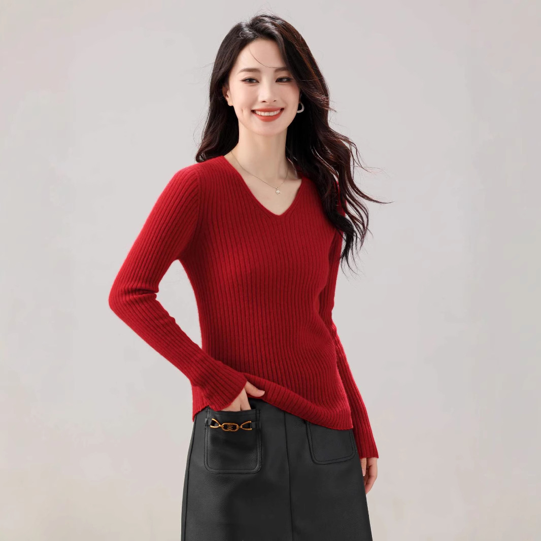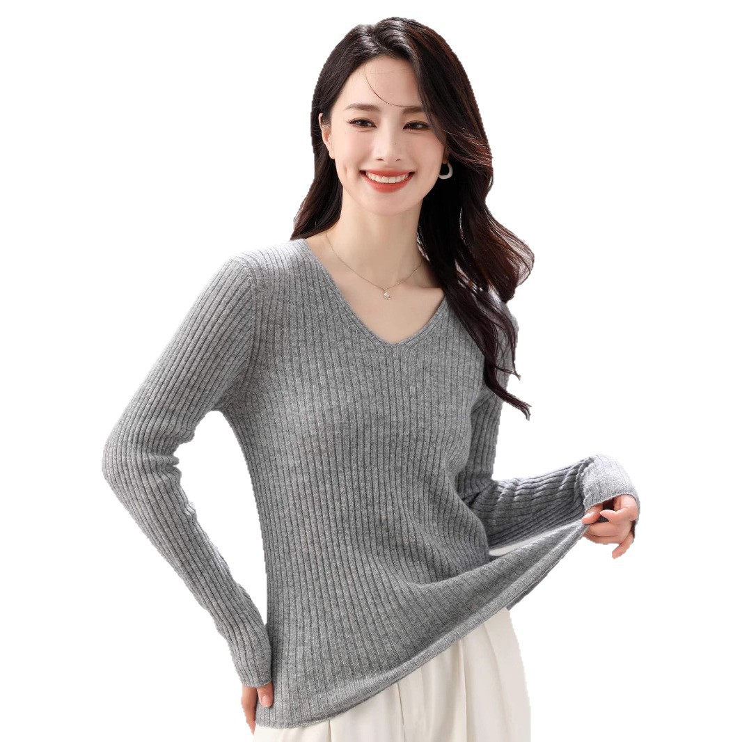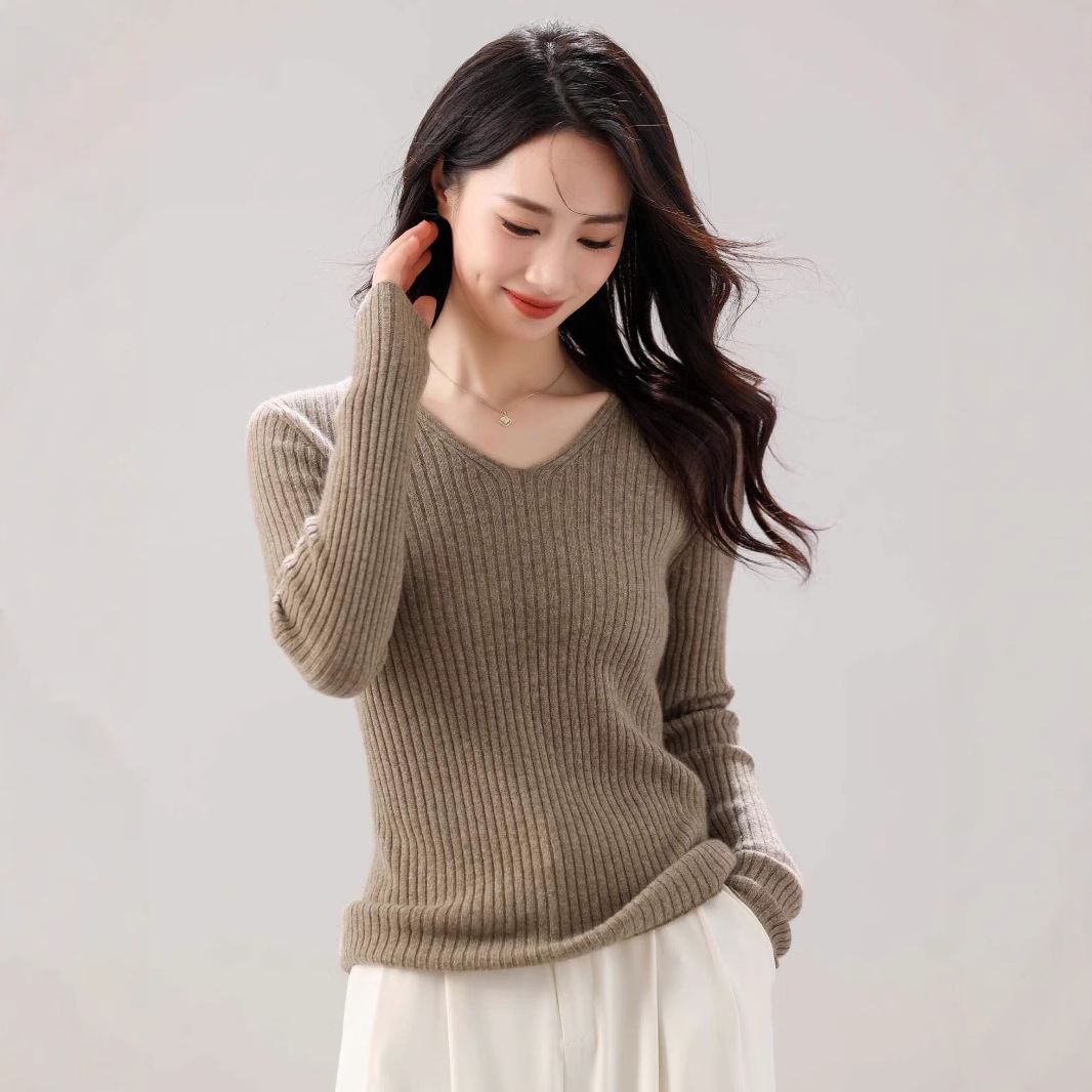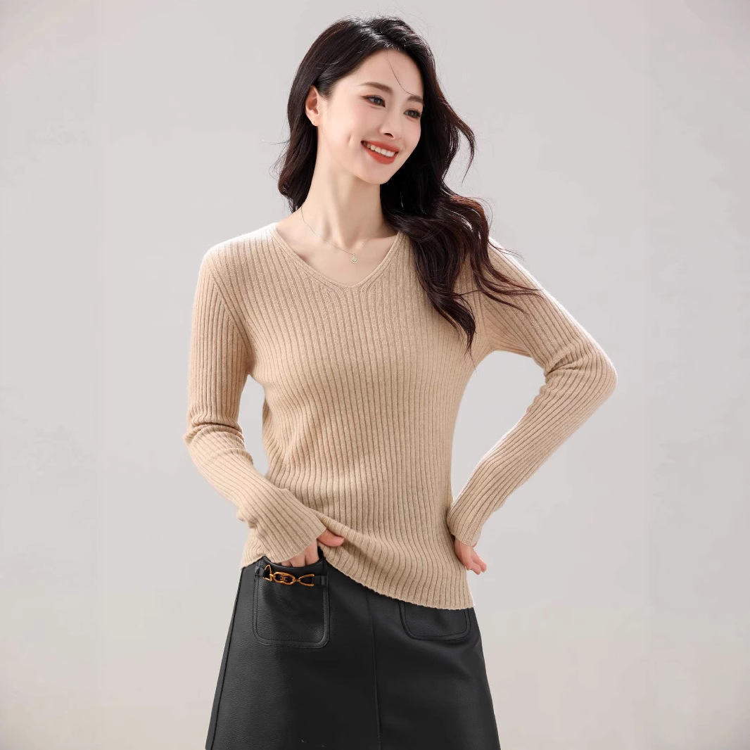 2025秋冬新款通勤简约百搭时尚100小山羊绒圆领长袖修身打底衫女