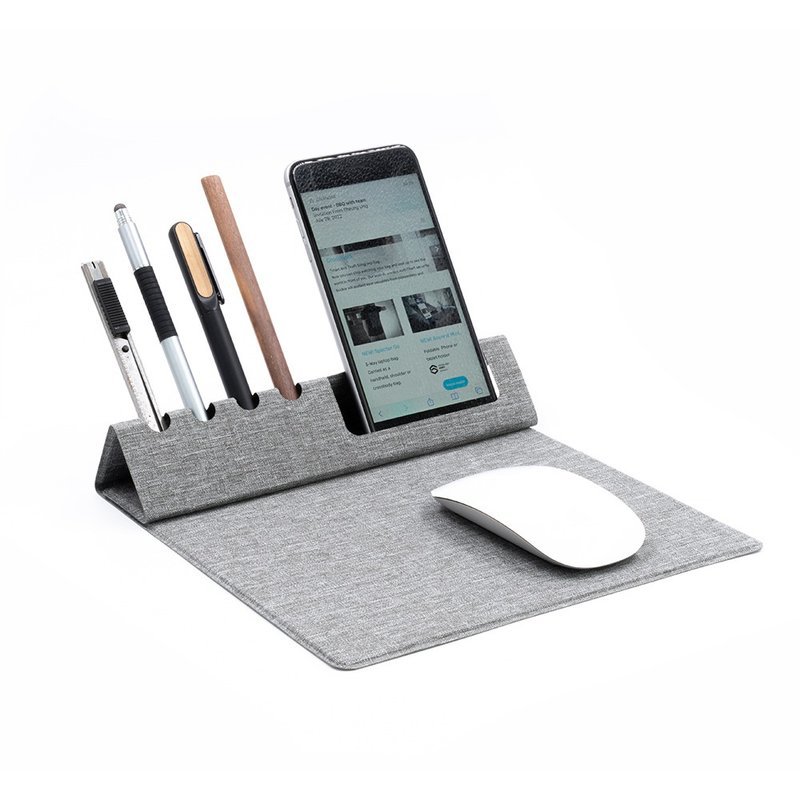 简约纯色商务办公书桌多功能鼠标垫笔架手机支架 可折叠三角笔架