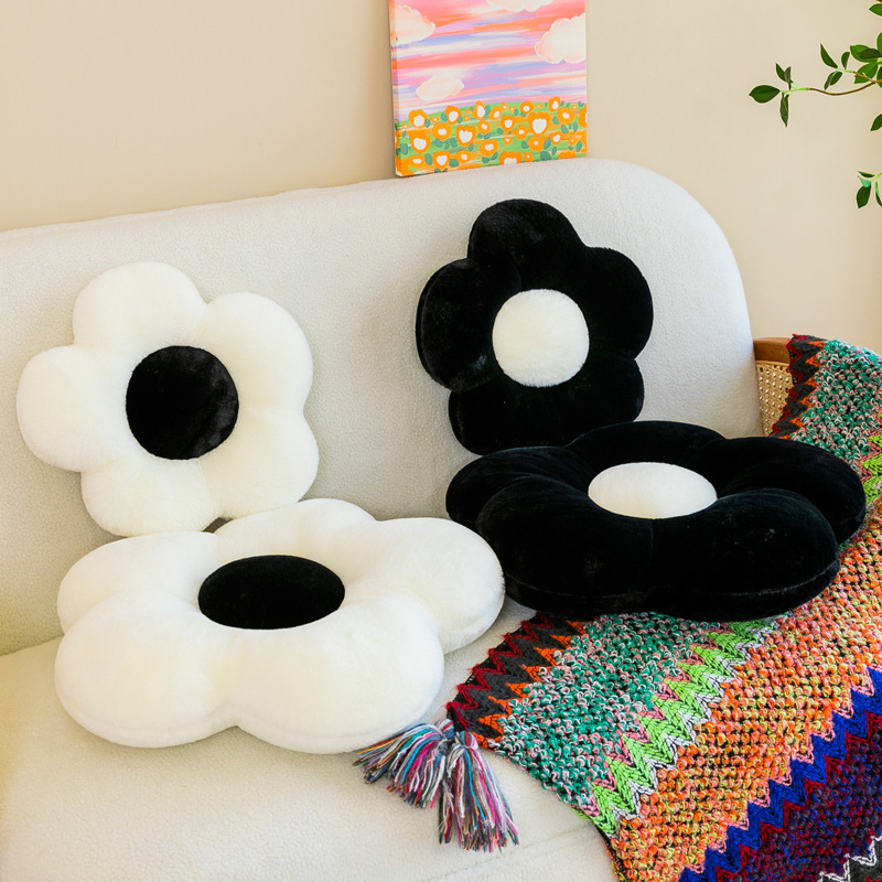 可爱兔毛花朵坐垫沙发客厅靠枕ins风床头靠垫靠背飘窗法式抱枕批