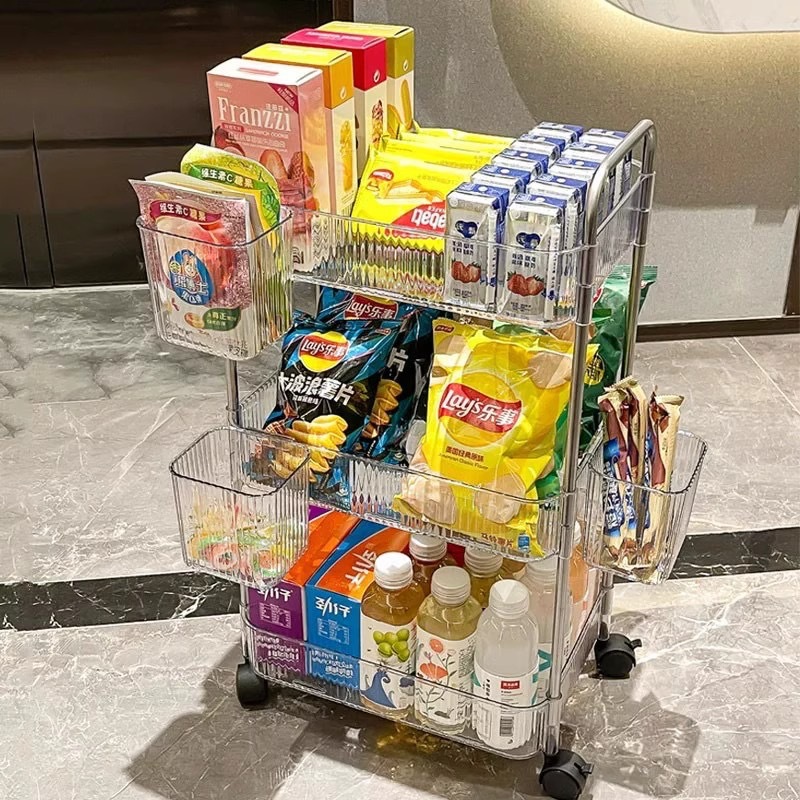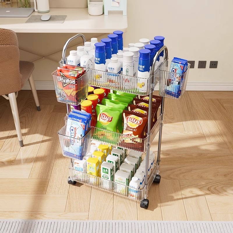 化妆品收纳架透明亚克力置地式收纳车可移动置物架厨房储物