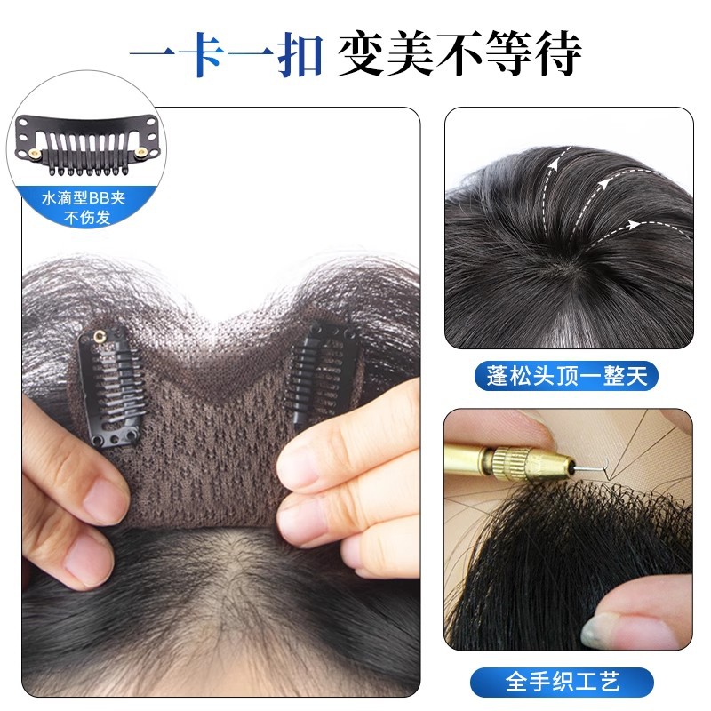 假发片女头顶全真发增发量蓬松颅顶轻薄自然遮白发八字刘海补发片