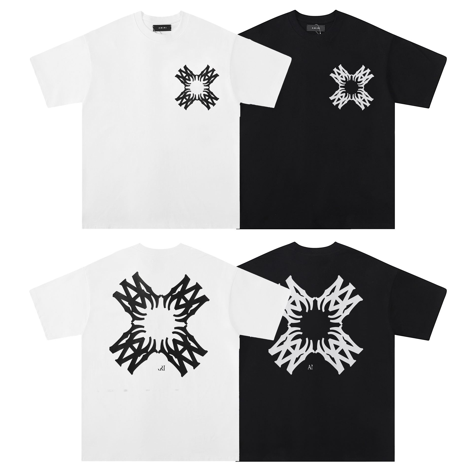 跨境新品潮款情侣休闲字母logoAMIRI双纱花纹字母宽松t恤高街半袖