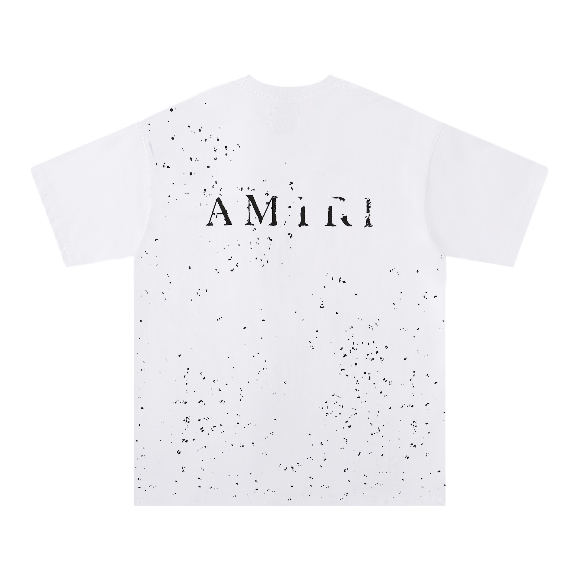 美式潮小众高街男女AMIRI数码印花泼墨款休闲圆领短袖复古宽松T恤