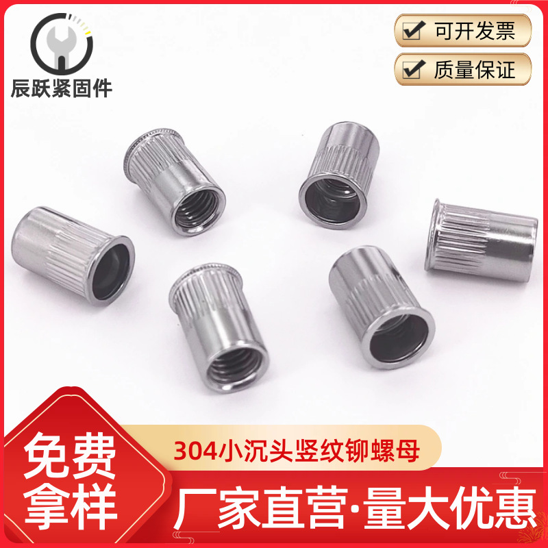 304不锈钢小沉头竖纹拉铆螺母 滚花条纹铆接螺母 通孔铆螺母 拉铆