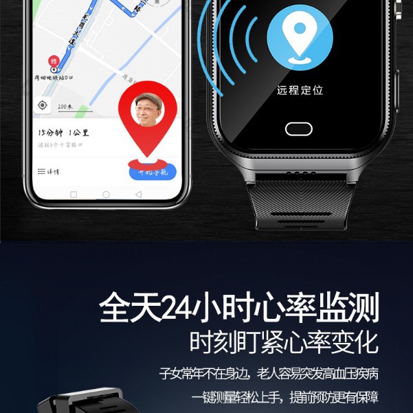 智能手表全网通多功能老人定位手机血压心率健康监测后台监管