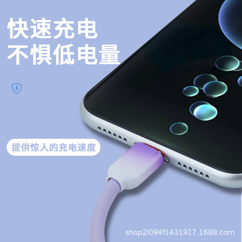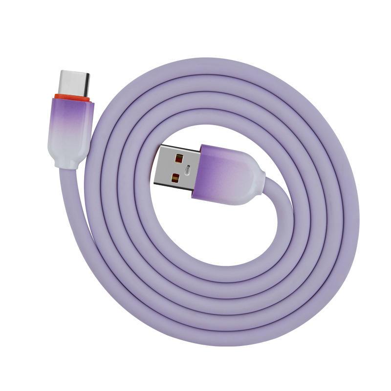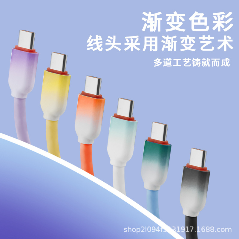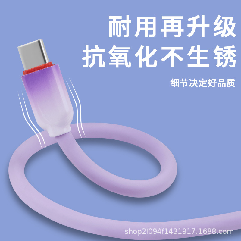 跨境硅胶防冻防断数据线柔软弹充电线120W枪色套壳快充线厂家供应