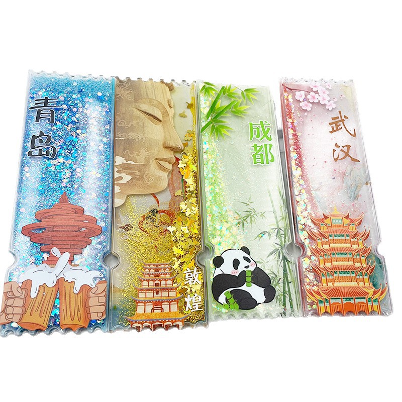亚克力票根流麻冰箱贴 国潮文创旅游城市流麻亚克力强磁吸冰箱贴