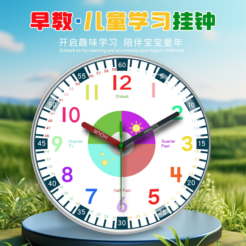 挂钟高级感早教学习静音客厅家用钟表学生儿童彩虹挂墙免打孔时钟