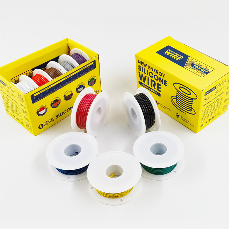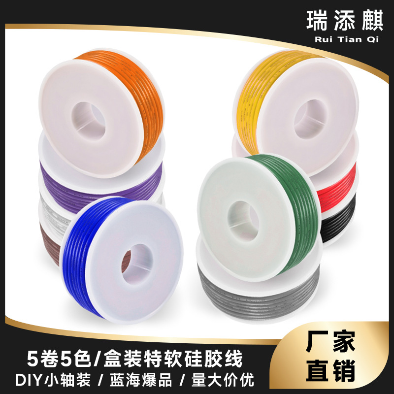 全球跨境直供5卷5色/彩色盒装特软耐高温硅胶线30-16AWG航模线