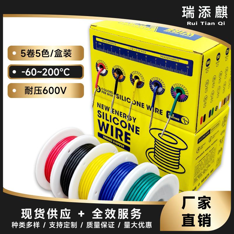 规格型号5卷/盒装硅胶线-30AWG-5卷*20米-红黑黄蓝绿