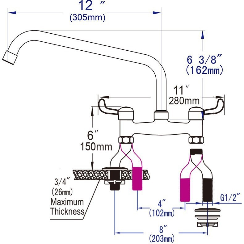 阀座直径 | 25mm*2 | | 规格 | 8寸可调龙头 |
