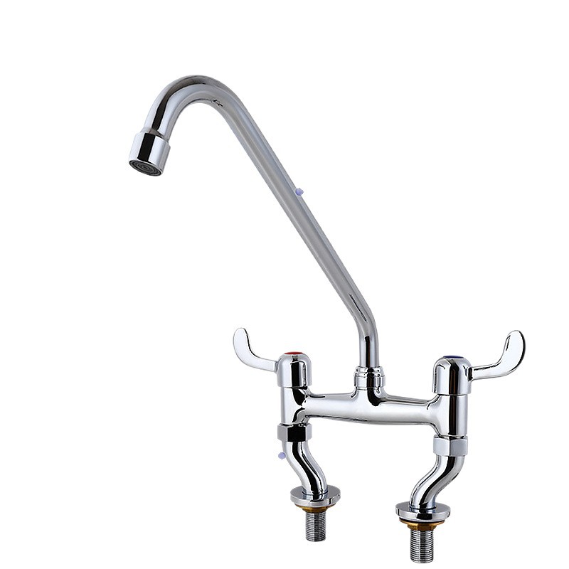 商用冷热双温厨房龙头4-8英吋孔距可调脚龙头10cm 立式摇摆龙头